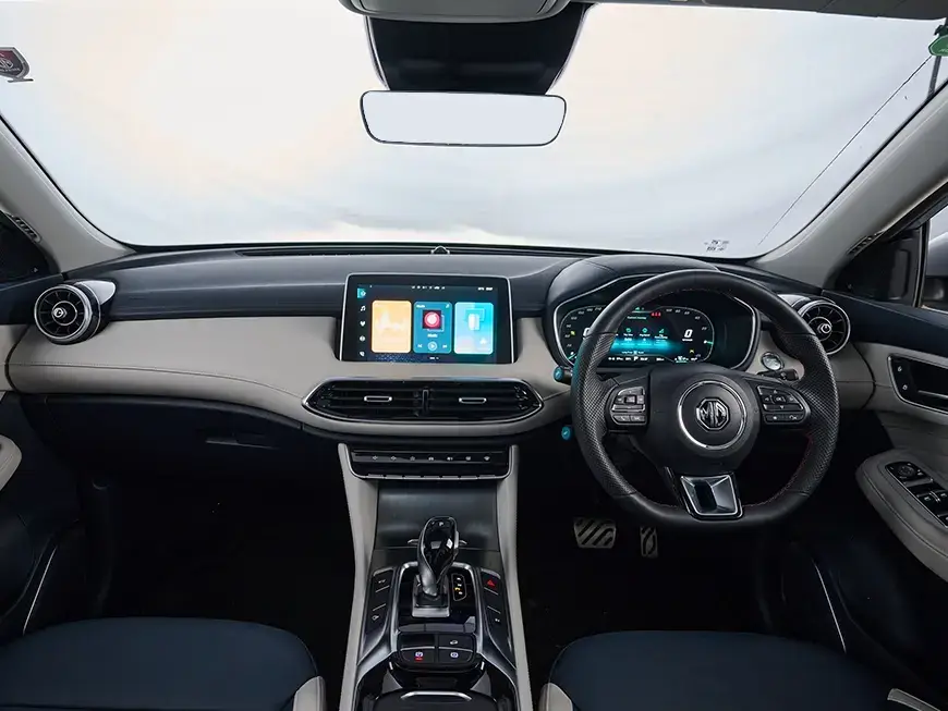 The MG HS PHEV is designed with comfort in mind, from every curve to every detail. The PVC + Leather sport seats offer exceptional support, while the leather-wrapped steering wheel adds a refined touch. The soft-touch dashboard and thoughtful features create a comfortable, well-equipped cabin for every drive.